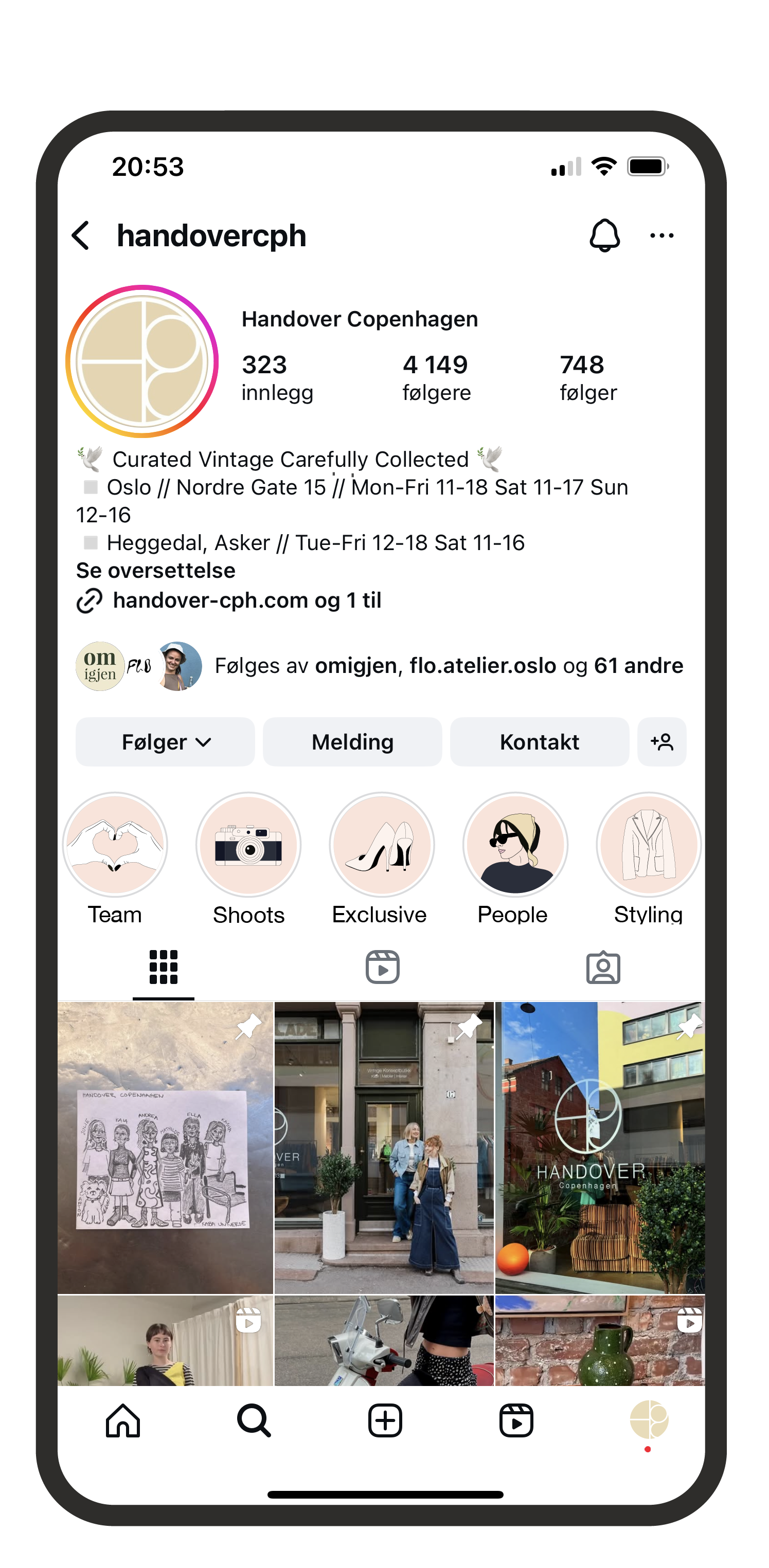 Illustrasjoner til Instagram highlight covers for Handover Copenhagen, en kurert vintage-butikk med fokus på klassiske, tidløse plagg.